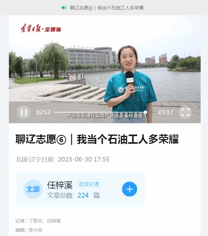 编者按:近日,北国·辽宁日报以《聊辽志愿⑥|我当个石油工人多荣耀》为题,在招生季对我校整体概况以视频形式进行了宣传报道。现将相关报道转载如下: