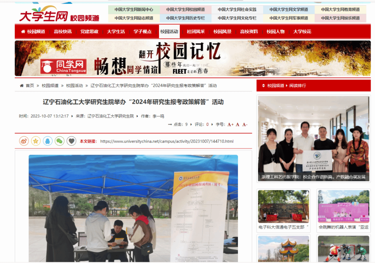 编者按:近日,中国大学生网对我校研究生院团委联合研究生招办举办“2024年研究生报考政策解答”活动进行了宣传报道。现将相关报道转载如下: