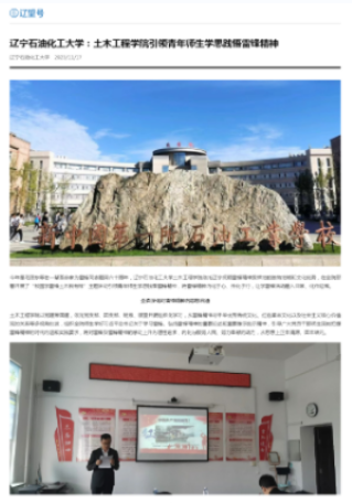 编者按:近日,辽宁日报·辽望号、中国大学生网对我校土木工程学院引领青年师生学思践悟雷锋精神进行了宣传报道。现将相关报道转载如下: